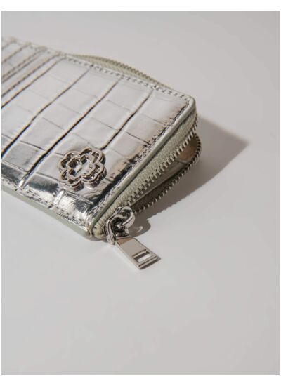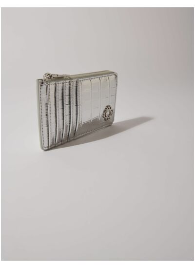 Orné d'une puce Clover, ce petit porte-cartes en cuir embossé façon croco se décline en version métallisé argenté. Compact et pratique, il est muni de plusieurs fentes et d'une fermeture zippée, permettant de garder ses cartes à portée de main.
