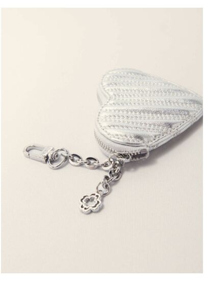 Un petit accessoire à accrocher à son sac, à ses clés et à transporter partout. Ce porte-monnaie cœur en cuir métallisé dévoile des lignes matelassées, et s'accompagne d'un mousqueton et d'une petite chaîne métallique à charm signature.