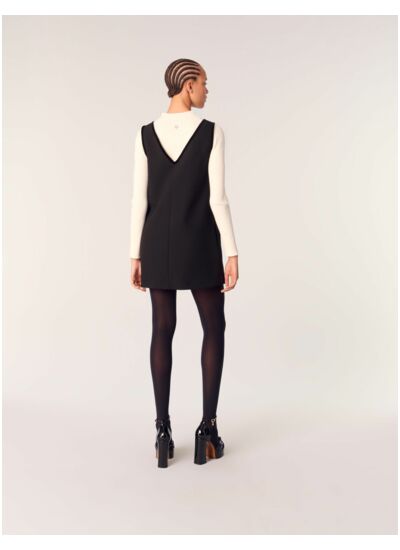 Quelles sont les caractéristiques principales de la robe chasuble col velours Maje ? Cette robe se distingue par son col en velours qui apporte une touche de sophistication et de douceur. Sa coupe chasuble offre un style moderne et facile à porter, idéal pour un look à la fois élégant et décontracté.