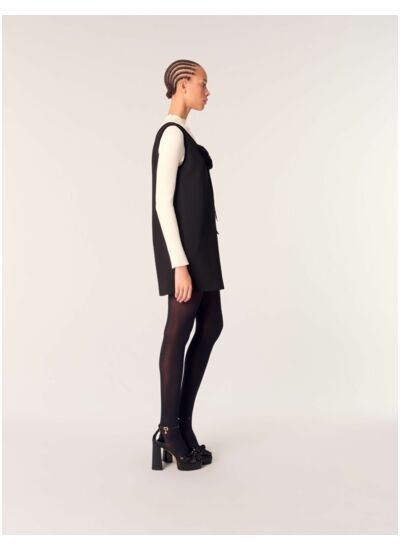 Confectionnée dans un tissu en crêpe lourd, cette robe courte sans manches est une pièce versatile, à porter seule ou en superposition. L'encolure en V effet chasuble est marquée par un large nœud à l'avant. Les bords en velours apportent une finition soignée et mettent en avant sa coupe ample.