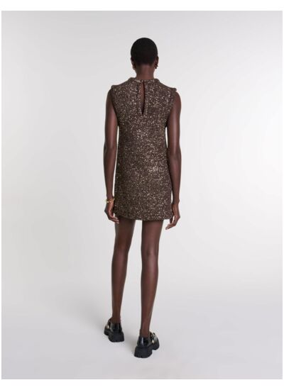 Cette robe courte à sequins Maje est-elle adaptée pour une soirée habillée ? Oui, sa coupe courte et ses sequins apportent une touche d’élégance et de modernité idéale pour les événements festifs ou les soirées chics. Elle se porte facilement avec des accessoires sobres pour un look sophistiqué.