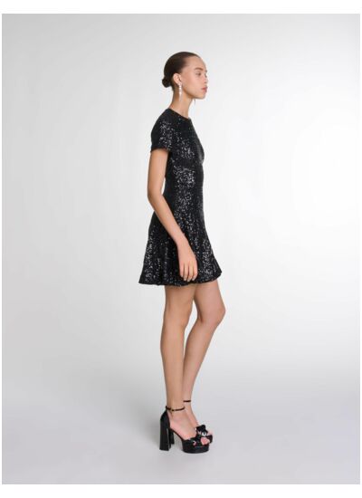 Cette robe courte à sequins Maje est-elle adaptée pour une soirée élégante ? Oui, sa coupe courte et ses sequins apportent une touche de glamour idéale pour une soirée chic ou un événement festif, garantissant une allure sophistiquée et moderne. Comment entretenir cette robe à sequins pour préserver son éclat ? Il est recommandé de la nettoyer à sec pour éviter d'endommager les sequins et conserver la qualité du tissu, assurant ainsi une tenue impeccable dans le temps. Cette robe convient-elle à toutes les morphologies ? Sa coupe courte et ajustée met en valeur la silhouette tout en restant confortable, elle s’adapte particulièrement bien aux morphologies fines à moyennes. Peut-on porter cette robe en journée ou est-elle réservée aux occasions spéciales ? Bien que conçue pour les occasions festives, elle peut être stylée en journée avec des accessoires sobres et des chaussures plates pour un look audacieux et tendance. Quels accessoires privilégier pour sublimer cette robe courte à sequins ? Optez pour des accessoires minimalistes comme une pochette élégante et des escarpins sobres afin de laisser la robe être la pièce maîtresse de votre tenue.