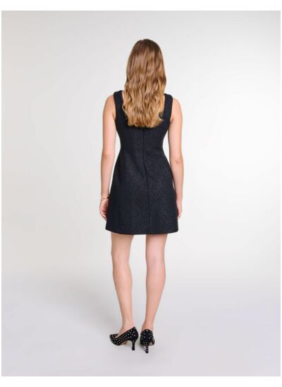 Cette robe courte à strass Maje est-elle adaptée pour une soirée habillée ? Oui, cette robe courte à strass Maje est conçue pour sublimer vos tenues de soirée. Son design élégant et ses détails scintillants apportent une touche sophistiquée idéale pour les événements festifs ou les dîners chics. Comment choisir la taille idéale de cette robe Maje ? Nous recommandons de consulter le guide des tailles Maje pour un ajustement précis. La coupe courte et ajustée de cette robe met en valeur la silhouette, il est donc important de choisir votre taille habituelle pour un confort optimal. Quels conseils pour entretenir cette robe à strass ? Pour préserver l’éclat des strass et la qualité du tissu, privilégiez un nettoyage à sec. Évitez le lavage en machine qui pourrait endommager les ornements et la structure de la robe. Cette robe convient-elle à un usage quotidien ou uniquement aux occasions spéciales ? Cette robe courte à strass Maje est pensée pour les occasions spéciales. Son style et ses finitions la rendent moins adaptée à un usage quotidien, mais parfaite pour se démarquer lors d’événements où l’élégance est de mise. Peut-on accessoiriser facilement cette robe ? Oui, cette robe à strass se marie parfaitement avec des accessoires sobres comme des escarpins noirs et une pochette minimaliste, permettant de mettre en valeur son éclat sans surcharge.
