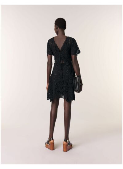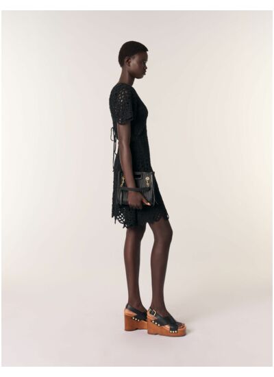 Cette robe courte en crochet est-elle adaptée pour les occasions formelles ? Cette robe Maje, grâce à son travail en crochet délicat et sa coupe courte, offre une élégance subtile idéale pour des événements semi-formels ou des sorties chics. Elle se porte facilement avec des accessoires sophistiqués pour rehausser votre tenue. De quel matériau est composée la robe courte en crochet ? La robe est confectionnée en crochet, un textile qui allie légèreté et texture unique, garantissant confort et style. Ce choix de matière assure également une bonne respirabilité, parfaite pour les saisons chaudes. Comment entretenir cette robe en crochet pour préserver sa qualité ? Pour conserver la finesse du crochet, il est recommandé de laver la robe à la main ou en cycle délicat, à basse température, et de la faire sécher à plat. Évitez le sèche-linge afin de préserver la forme et la texture du tissu. Quelle coupe et quelle taille choisir pour cette robe Maje ? Cette robe courte en crochet présente une coupe ajustée qui met en valeur la silhouette sans être contraignante. Il est conseillé de se référer au guide des tailles Maje pour choisir la taille correspondant parfaitement à vos mensurations, garantissant un tombé impeccable. Peut-on porter cette robe en toute saison ? La robe courte en crochet est idéale pour le printemps et l’été grâce à sa matière respirante. En hiver, elle peut être portée avec des couches supplémentaires comme un manteau ou un sous-pull fin pour un look stylé et adapté aux températures plus fraîches.