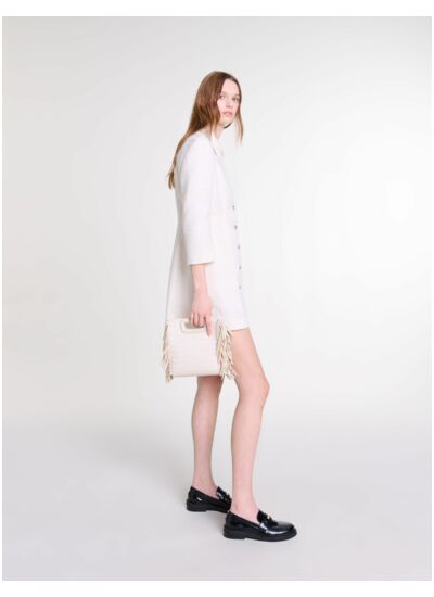 Avec quels accessoires associer cette robe courte en tweed ? Elle se marie parfaitement avec des escarpins ou des bottines élégantes, ainsi qu’un sac structuré pour un look moderne et chic. Un manteau long ou un blazer complètera l’ensemble en apportant une touche sophistiquée.
