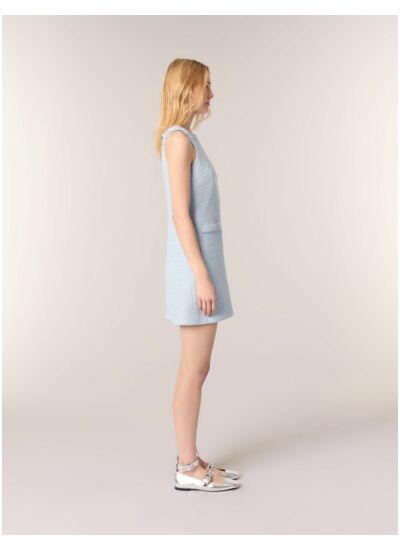 - Robe courte droite sans manches en tweed