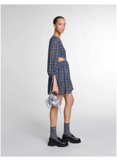 Ornée de l'imprimé signature Clover, cette robe courte séduit par son allure légère et structurée par un col rond, des manches longues et des poignets à liens. Les découpes audacieuses et la jupe délicatement plissée jouent avec les volumes pour un effet captivant.