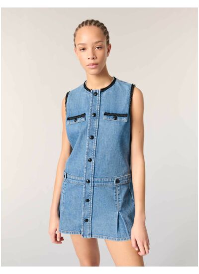 - Robe courte sans manches en denim