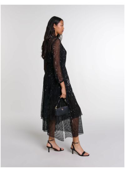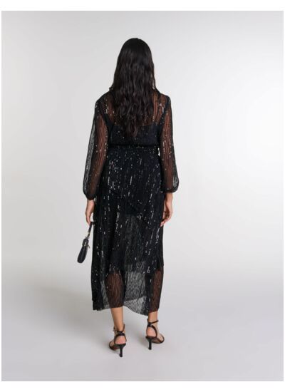 Cette robe longue à sequins Maje est-elle adaptée pour une soirée élégante ? Oui, sa coupe fluide et ses sequins apportent une touche sophistiquée idéale pour un événement chic ou une soirée festive. Elle met en valeur la silhouette tout en offrant confort et style.