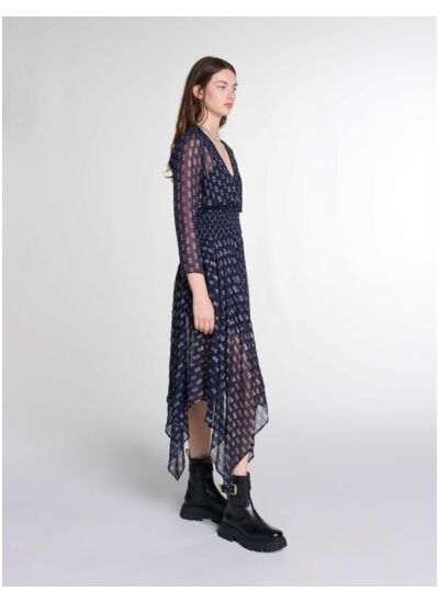 Quelle matière compose la robe longue asymétrique imprimé fleurs Maje ? La robe est conçue dans un tissu léger et fluide qui assure confort et élégance tout au long de la journée, parfait pour sublimer la silhouette avec son imprimé floral délicat.