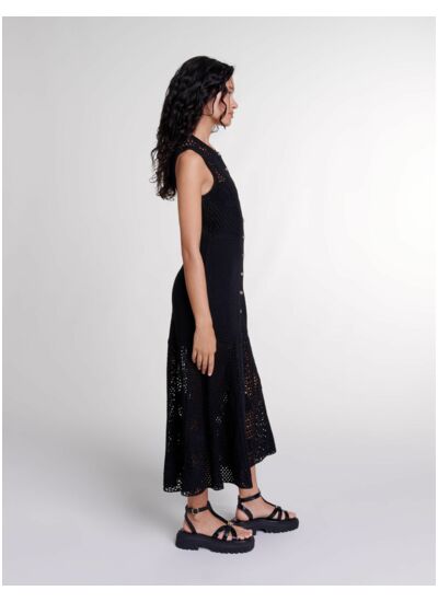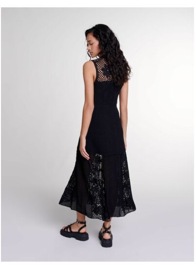Comment entretenir cette robe longue en crochet Maje ? Il est recommandé de la laver à la main ou en cycle délicat à basse température pour préserver la finesse du crochet. Évitez le sèche-linge et privilégiez un séchage à plat pour maintenir sa forme et sa qualité.