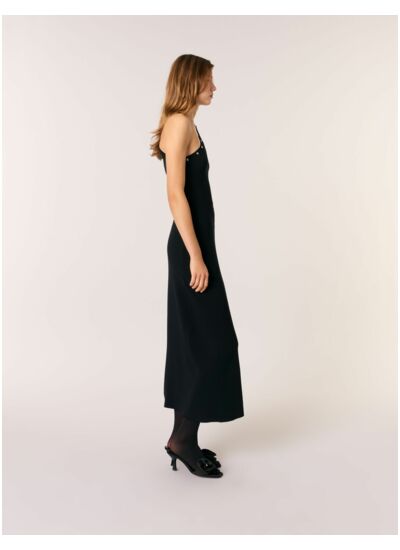 Cette robe longue en maille s’adapte aussi bien aux événements formels qu’aux sorties décontractées, offrant une polyvalence idéale pour un dressing contemporain.