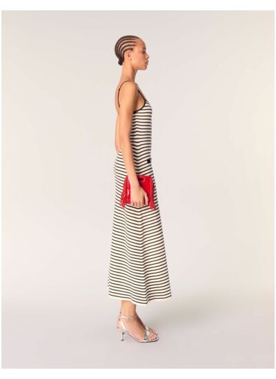 Comment choisir la taille idéale pour cette robe longue ? La coupe de cette robe Maje est ajustée mais extensible grâce à la maille côtelée. Nous recommandons de suivre votre taille habituelle pour un maintien parfait.