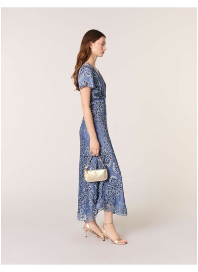 Cette robe longue fluide imprimée Maje est-elle adaptée aux occasions formelles ? Oui, sa coupe élégante et son imprimé raffiné en font un choix idéal pour les événements formels comme les mariages ou les dîners. Elle allie confort et sophistication pour un look soigné sans effort. Comment choisir la bonne taille pour cette robe Maje ? Nous recommandons de se référer au guide des tailles Maje disponible sur notre site, car la coupe fluide peut légèrement varier selon les modèles. En cas de doute, privilégiez la taille habituelle pour un tombé parfait. Quel entretien nécessite cette robe longue imprimée ? Pour préserver la qualité du tissu fluide et l’éclat de l’imprimé, un lavage à la main ou un nettoyage à sec est conseillé. Évitez le sèche-linge pour maintenir la forme et la douceur du vêtement. Cette robe convient-elle aux saisons intermédiaires ? Oui, sa matière légère et fluide la rend parfaite pour le printemps et l’automne. Elle peut être associée à une veste légère ou un pull fin pour s’adapter aux variations de température. Quels accessoires privilégier avec cette robe Maje ? Pour sublimer son imprimé, optez pour des accessoires sobres comme des sandales nude ou des bijoux minimalistes. Une ceinture fine peut également structurer la silhouette et accentuer l’élégance naturelle de la robe.