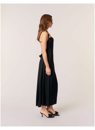 Quelle matière compose la robe longue satinée Maje ? La robe est confectionnée en satin, un tissu fluide et brillant qui apporte élégance et confort, idéal pour un look sophistiqué.