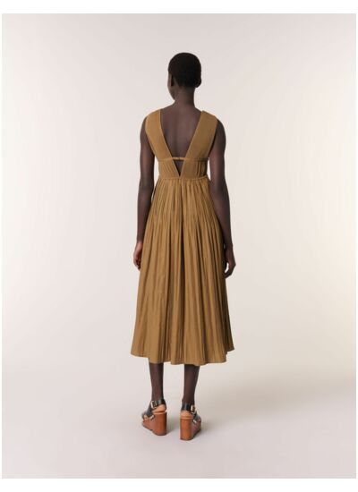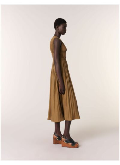 Quelles sont les caractéristiques principales de la robe MFPRO04130 de Maje ? Cette robe plissée se distingue par son élégance fluide et son décolleté orné de bijoux, apportant une touche sophistiquée et féminine idéale pour des occasions spéciales ou un style raffiné au quotidien.