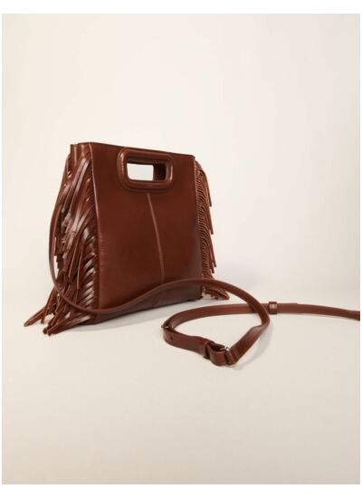 Le sac M, iconique de Maje, se décline en cuir craquelé. Orné de franges sur les côtés et muni d'une poignée gainée, il dévoile un logo doré embossé et une signature gravée sur les mousquetons. Pratique avec sa fermeture aimantée, il est muni d'une bandoulière ajustable et amovible offrant différents portés : à la main, à l'épaule ou en crossbody.