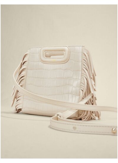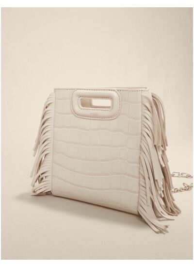 Le sac M, iconique de Maje, se décline en version mini en cuir embossé effet croco, à la fois chic et pratique. Orné de franges sur les côtés et muni d'une poignée gainée, il dévoile un logo embossé ainsi qu'une signature gravée sur les mousquetons. Pratique avec sa fermeture aimantée, il est muni d'une bandoulière cuir ajustable et amovible ainsi que d'une bandoulière chaine amovible offrant différents portés : à la main, à l'épaule ou en crossbody. Réf. : MFASA00233