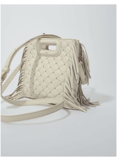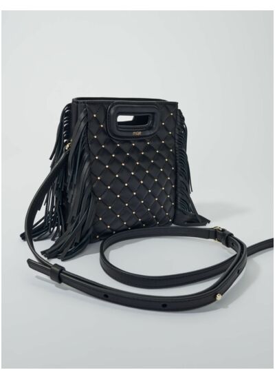Le sac M, iconique de Maje, se décline en version mini en cuir matelassé ponctué de studs dorés, à la fois chic et pratique. Orné de franges sur les côtés et muni d'une poignée gainée, il dévoile un logo embossé ainsi qu'une signature gravée sur les mousquetons. Pratique avec sa fermeture aimantée, il est muni d'une bandoulière cuir ajustable et amovible offrant différents portés : à la main, à l'épaule ou en crossbody.