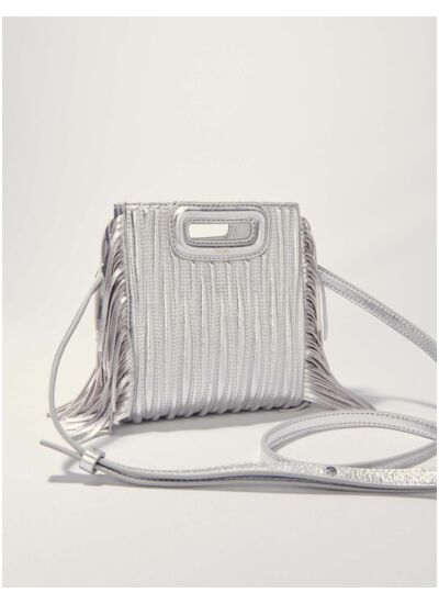 Le sac M, iconique de Maje, se décline en version mini, en cuir métallisé à lignes matelassées. Orné de franges sur les côtés et muni d'une poignée gainée, il dévoile un logo embossé ainsi qu'une signature gravée sur les mousquetons. Pratique avec sa fermeture aimantée, il est muni d'une bandoulière cuir ajustable et amovible offrant différents portés : à la main, à l'épaule ou en crossbody.