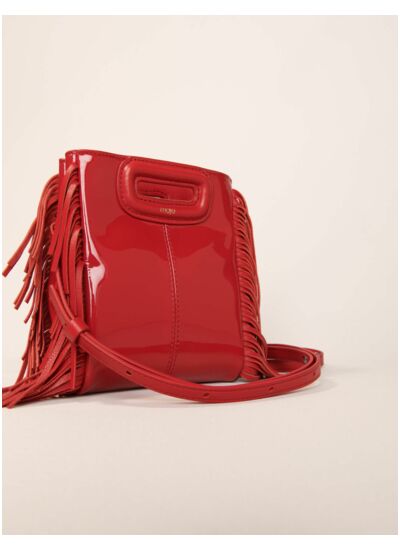 Le sac M, iconique de Maje, se décline en version mini en cuir vernis, à la fois chic et pratique. Orné de franges sur les côtés et muni d'une poignée gainée, il dévoile un logo embossé ainsi qu'une signature gravée sur les mousquetons. Pratique avec sa fermeture aimantée, il est muni d'une bandoulière cuir ajustable et amovible offrant différents portés : à la main, à l'épaule ou en crossbody.