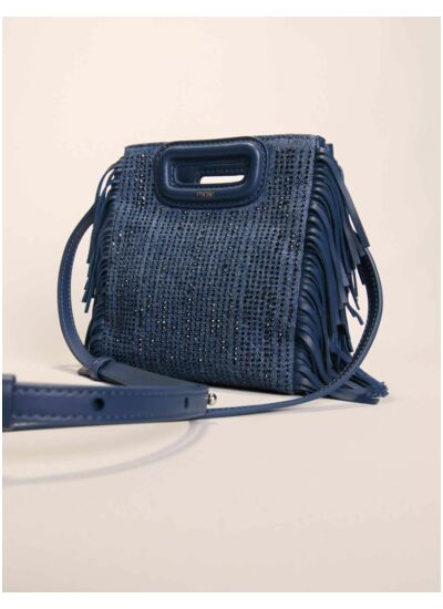 Le sac M, iconique de Maje, se décline en version mini en denim strassé, à la fois chic et pratique. Orné de franges sur les côtés et muni d'une poignée gainée, il dévoile un logo embossé ainsi qu'une signature gravée sur les mousquetons. Pratique avec sa fermeture aimantée, il est muni d'une bandoulière cuir ajustable et amovible offrant différents portés : à la main, à l'épaule ou en crossbody.