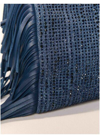 Ce sac convient-il à tous les styles vestimentaires ? Sa finition en denim strassé apporte une touche moderne et chic qui s’adapte aussi bien à un look décontracté qu’à une tenue plus sophistiquée, offrant une grande polyvalence stylistique.