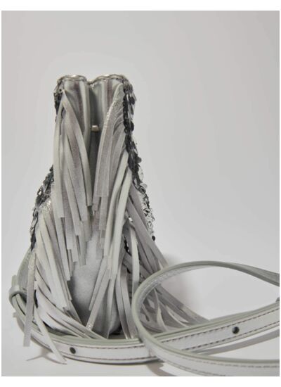 Le sac M, iconique de Maje, se décline en version mini ponctué de sequins argentés en all-over. Orné de franges sur les côtés et muni d'une poignée gainée en cuir, il dévoile un logo embossé ainsi qu'une signature gravée sur les mousquetons. Pratique avec sa fermeture aimantée, il est muni d'une bandoulière cuir ajustable et amovible offrant différents portés : à la main, à l'épaule ou en crossbody.