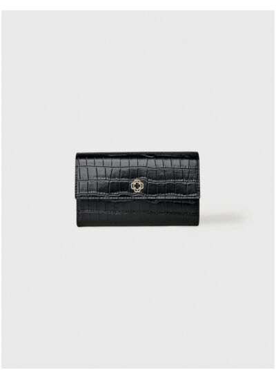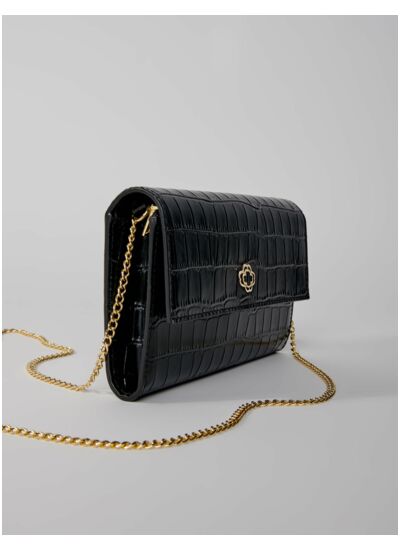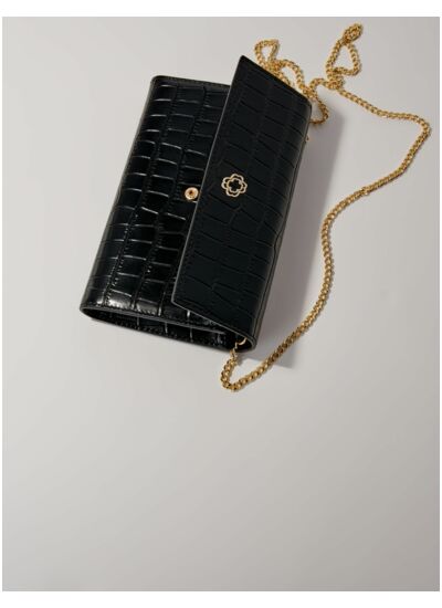 À la main ou en bandoulière, cette pochette à rabat en cuir embossé façon croco promet différents portés en fonction de vos styles et de vos envies.