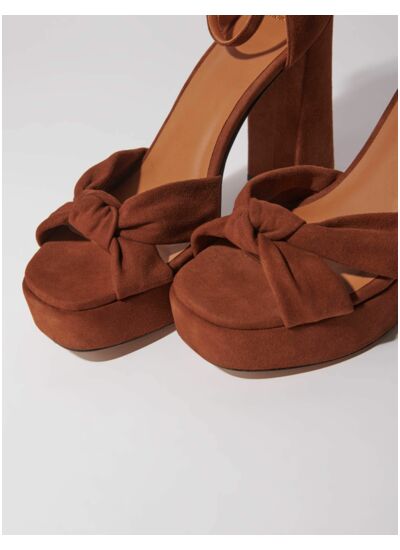 Confectionnées en cuir suédé, ces sandales à plateformes munies d'un talon vertigineux donnent instantanément de l'allure à vos tenues de jour ou de cérémonie.