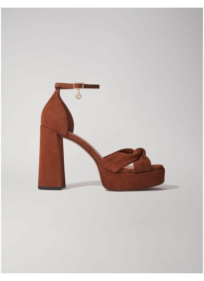 Confectionnées en cuir suédé, ces sandales à plateformes munies d'un talon vertigineux donnent instantanément de l'allure à vos tenues de jour ou de cérémonie.