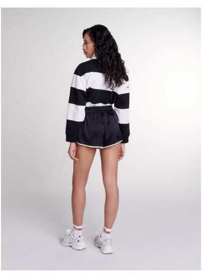 Ce short en satin Maje est-il adapté pour une tenue élégante ? Ce short en satin offre une texture lisse et brillante qui apporte une touche sophistiquée à vos tenues. Il se porte aussi bien en journée qu’en soirée, idéal pour un look chic et décontracté.