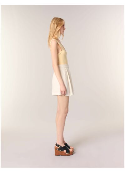 Avec une taille haute, ce short écru dévoile des pinces et des plis, soulignant sa coupe fluide et évasée. Deux poches viennent parfaire cette pièce intemporelle.