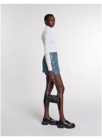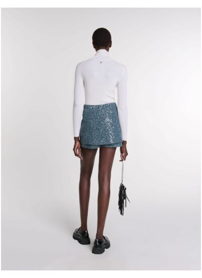 Brillez de mille feux avec ce short jupe paré de sequins en all-over. Confectionné en denim effet tweed, deux poches et une taille élastiquée au dos soulignent votre silhouette avec élégance.