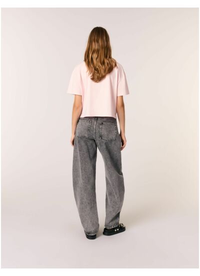 Comment associer ce tee-shirt pour un style tendance ? Portez-le avec un pantalon taille haute ou une jupe pour équilibrer la coupe courte. Le col bijoux apporte une touche sophistiquée qui se passe facilement d’accessoires supplémentaires, parfait pour un look chic et minimaliste.