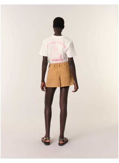 Ce tee-shirt à col rond et manches courtes dévoile un motif Paris Milan Mocktail Club et une broderie Clover au dos. Une pièce à la fois casual et sophistiquée, à accompagner d'un pantalon ceinturé, un sac et des ballerines.