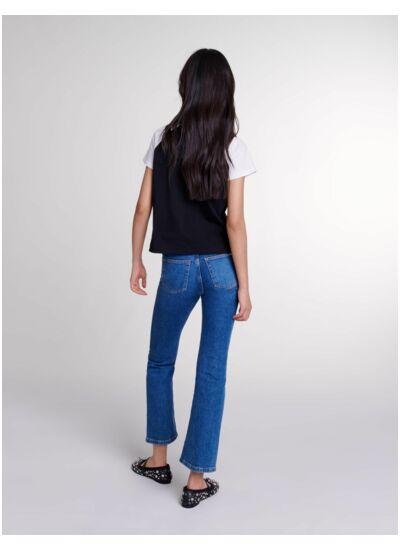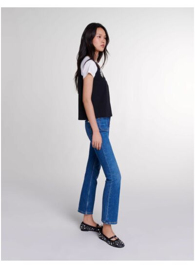 L'incontournable tee-shirt en coton est réinterprété par le studio Maje : muni d'un col rond et de manches courtes contrastées, il dévoile des patchs Saint Honoré Est 1998 ornés de strass brodés ainsi qu'un logo Clover signature. Facile à mixer, il s'associe à un jean droit et des ballerines à studs pour un look résolument chic.