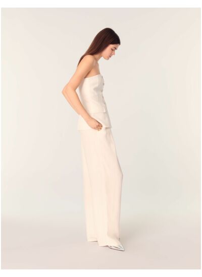 Mariage, fête estivale ou white party : le studio dévoile un vestiaire élégant et versatile, aussi glamour que décontracté, pour célébrer vos plus beaux jours.Ce top bustier gaine et sublime la silhouette avec une coupe travaillée et un toucher doux. Des boutons bijoux illuminent le décolleté, tandis que des plis sur la longueur et deux poches à rabat soulignent sa coupe épurée.