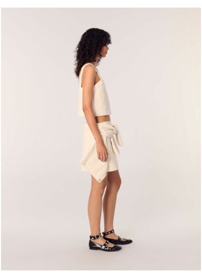 Ce top court en maille effet tweed est-il adapté à un style casual ou plus habillé ? Ce modèle Maje s’adapte parfaitement aux deux styles. Sa texture tweed apporte une touche sophistiquée, idéale pour une tenue habillée, tandis que sa coupe courte et sa maille confortable le rendent facile à associer à un jean ou une jupe pour un look décontracté.