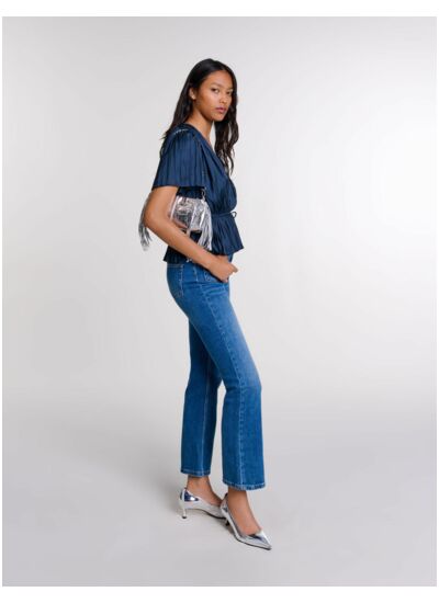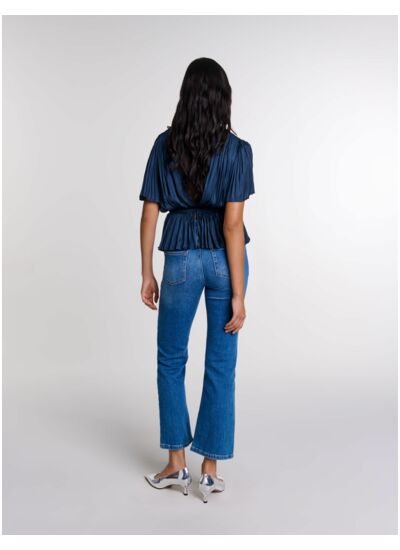 Ce top plissé manches courtes Maje convient-il à toutes les morphologies ? Ce modèle plissé épouse élégamment la silhouette sans marquer, offrant une coupe fluide qui s’adapte à la plupart des morphologies pour un look à la fois féminin et moderne. Comment entretenir ce top plissé pour préserver sa qualité ? Il est recommandé de suivre les instructions de lavage indiquées sur l’étiquette, généralement un lavage délicat à froid ou un nettoyage à sec pour conserver la finesse du plissé et la tenue du tissu. Ce top est-il facile à associer dans une garde-robe ? Oui, son design épuré et ses manches courtes en font une pièce polyvalente, idéale pour être portée aussi bien avec un pantalon tailleur qu’une jupe ou un jean, du bureau à une sortie décontractée. Quelle taille choisir pour un ajustement parfait ? Nous conseillons de se référer au guide des tailles Maje disponible sur notre site, le top étant conçu pour une coupe ajustée mais confortable, il est important de choisir sa taille habituelle pour un rendu optimal. Ce top plissé manches courtes est-il adapté aux saisons chaudes ? Sa matière légère et ses manches courtes le rendent idéal pour les températures estivales tout en restant élégant pour les occasions plus formelles.