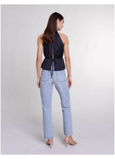 Avec quelles pièces associer ce top pour un look réussi ? Ce top plissé se marie parfaitement avec un pantalon tailleur pour un style chic et professionnel, ou avec un jean slim pour une allure décontractée mais sophistiquée. Il peut aussi être porté sous une veste légère pour varier les looks.
