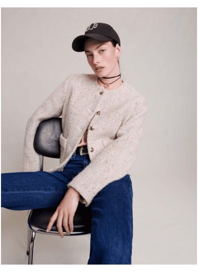 De quels matériaux est-elle composée ? Cette veste Maje est conçue avec des matériaux de qualité, garantissant confort et durabilité, parfaits pour un usage quotidien ou des occasions plus habillées.