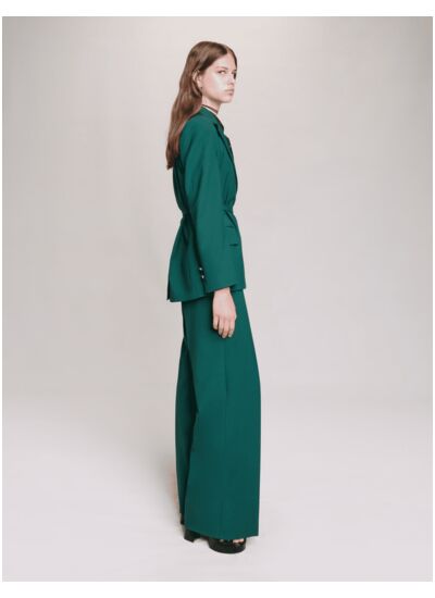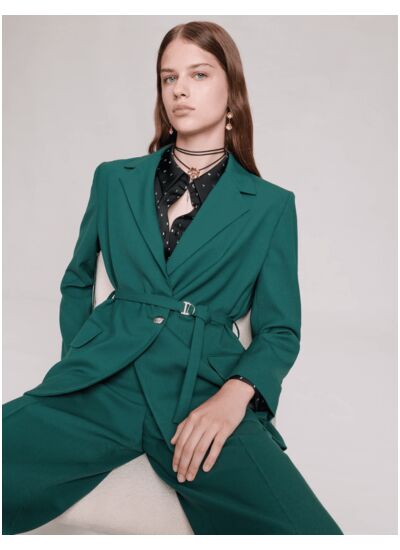 Elle est de tous les vestiaires : la veste de tailleur adopte cette saison la couleur phare : le vert bouteille. Munie d’un col tailleur, de manches longues et de poignets à deux boutons, elle dévoile deux poches plaquées et une fermeture à deux boutons asymétriques. Dessinant une silhouette fluide et structurée, elle est dotée d’une ceinture à boucle ajustable, à nouer au gré de vos envies pour un porté plus ou moins cintré.
