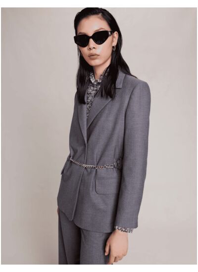 Cette veste de tailleur Maje est-elle adaptée à un usage professionnel ? Oui, sa coupe élégante et sa ceinture chaîne apportent une touche sophistiquée idéale pour un look professionnel affirmé tout en restant moderne. Comment entretenir cette veste pour préserver sa qualité ? Il est recommandé de suivre les instructions d’entretien indiquées sur l’étiquette, généralement un nettoyage à sec pour conserver la structure et la finition de la ceinture chaîne. Quelle taille choisir pour un ajustement parfait ? La veste Maje taille généralement conforme aux standards, il est conseillé de se référer au guide des tailles de la marque pour assurer un ajustement précis, surtout si vous souhaitez porter la ceinture bien cintrée. Cette veste convient-elle à d’autres styles que le tailleur classique ? Absolument, elle s’adapte aussi bien à un look casual chic en l’associant à un jean ou une robe fluide, grâce à sa ceinture chaîne qui apporte une note tendance et féminine. Quels sont les atouts distinctifs de cette veste par rapport à d’autres modèles ? Son design allie la rigueur du tailleur à l’originalité de la ceinture chaîne, offrant un équilibre parfait entre élégance intemporelle et détail mode qui valorise la silhouette.