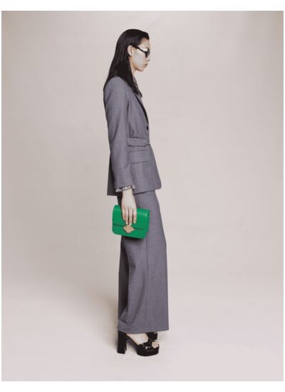 Elle souligne la taille avec élégance : ornée d'une ceinture amovible à mousquetons et chaînes en métal, elle s'ajuste grâce aux pressions et à la fermeture boutonnée. Jouez le total look en l'associant au pantalon coordonné et à un top, ajoutez un sac et des sandales à plateforme.