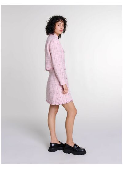 - Veste courte et droite en tweed à fils métallisés