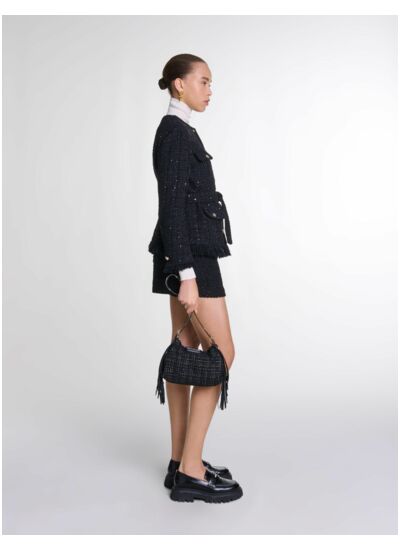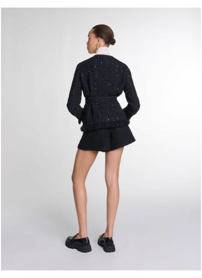Cette veste en tweed sequins Maje convient-elle pour une tenue de soirée ? Oui, son tissu en tweed agrémenté de sequins apporte une touche d’élégance et de brillance idéale pour sublimer vos looks de soirée tout en restant sophistiquée.