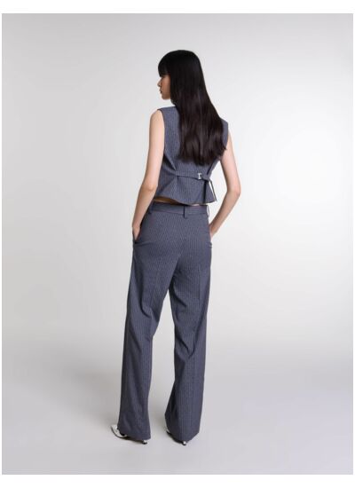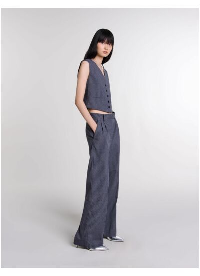 À porter seul ou en superposition, ce veston se pare de fines rayures et de strass en all-over pour une allure chic et audacieuse. Muni d'une encolure en V et d'une fermeture boutonnée, il affiche deux poches passepoilées et une martingale réglable au dos.