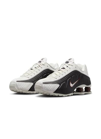 Cette chaussure associe une empeigne en synthétique et tissu, agrémentée de perforations découpées au laser pour une meilleure respirabilité. Son design s’inspire des modèles haute performance, offrant une allure dynamique et contemporaine qui ne passe pas inaperçue. L’amorti Nike Shox, signature de la gamme, répartit efficacement le poids pour un confort optimal tout au long de la journée.