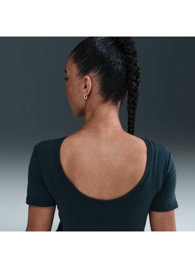 Fabriqué en tissu côtelé doux, ce T-shirt présente une coupe près du corps avec un dos échancré pour une silhouette affinée. Disponible en plusieurs tailles, il s’intègre parfaitement à ta collection Nike.